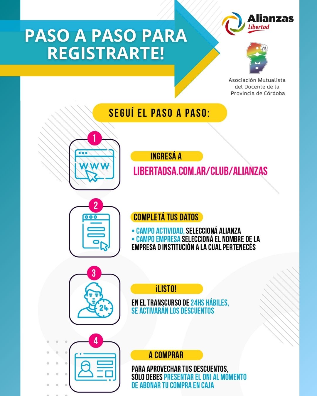 Ingresá a www.libertadsa.com.ar/club/alianzas registrate y comenzá a utilizarlos.