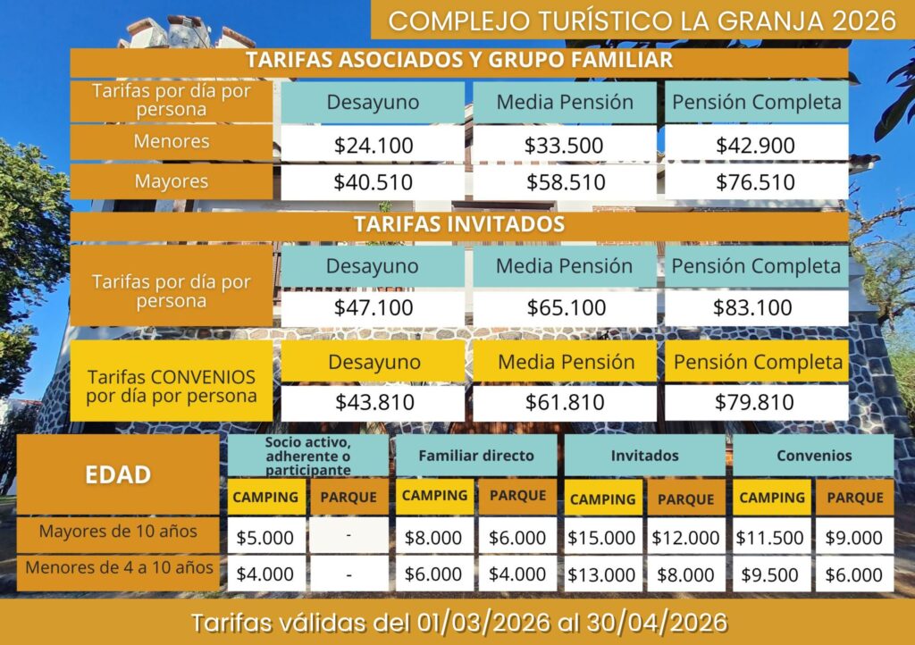 – Financiación COMPLEJO LA GRANJA: Entrega del 50% en efectivo, débito o transferencia bancaria y saldo en 3 cuotas sin interés con gastos administrativos o de 4 a 10 cuotas con interés.